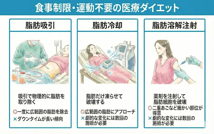 - 食事制限・運動をしたくない人には医療ダイエットという選択肢もある