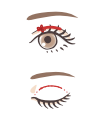 上眼瞼挙筋(目を開ける筋肉)とまぶたの皮膚の間に自然治癒の癒着を誘導することで二重のラインを形成する治療です。皮膚の下に糸を複雑に通すため、糸が落ち込みにくく、二重のラインを長く維持できます。